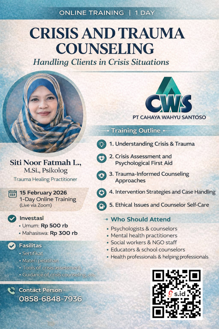 👉 Hubungi kami untuk informasi jadwal dan pendaftaran Training Crisis and Trauma Counseling